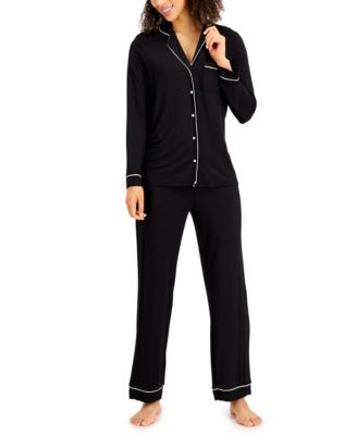 Alfani pima cotton color block notch collar long sleeve pajama pants set.Ink Navy Blue 2X