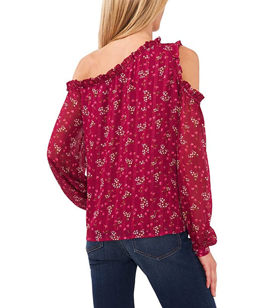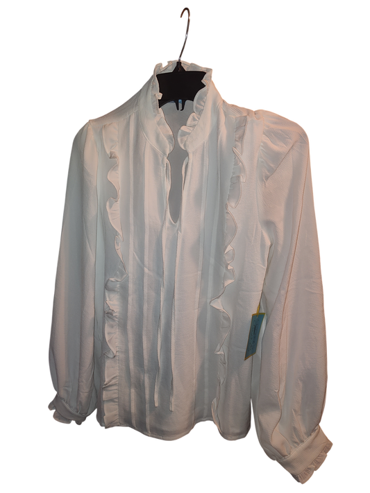 Women's Ruffled Pintucked Blouson-Sleeve Blouse Small