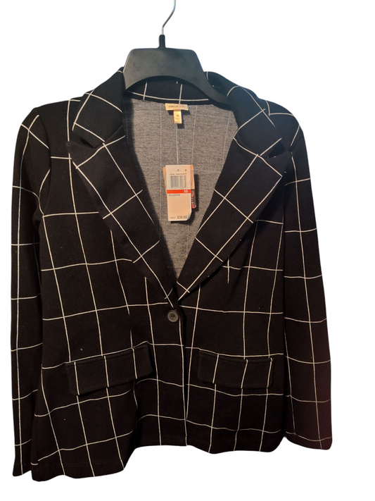 Self Esteem Juniors Plaid Notched-Lapel Blazer Black/ White XS