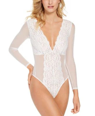 International Concepts Long-Sleeve Lace Mesh Bodysuit