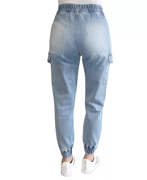 Madden Girl Juniors Cargo Jogger Jeans Light Wash Large