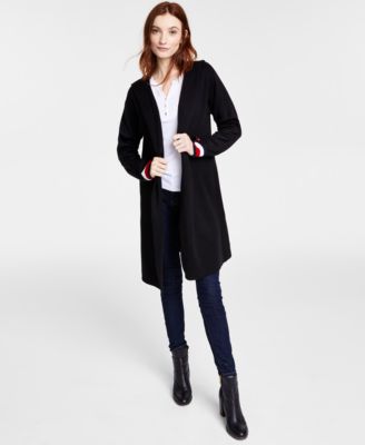 Tommy Hilfiger Striped-Cuff Hooded Cardigan gray sweater coat XL