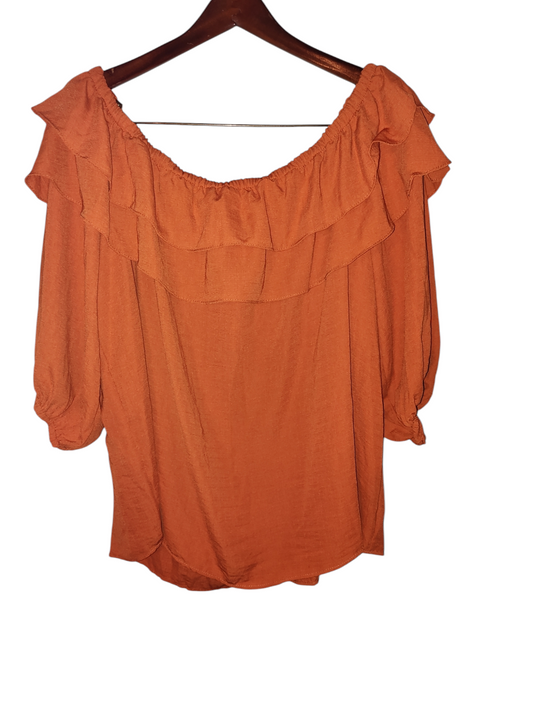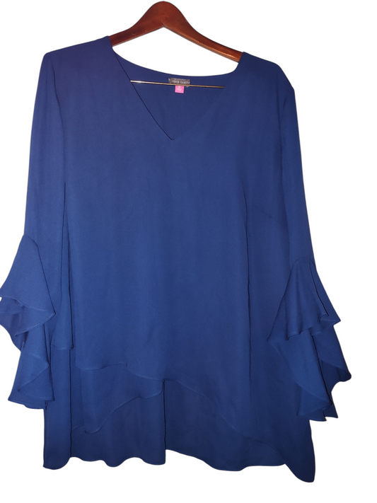Vince Camuto Plus Size Flutter-Sleeve V-Neck Blouse. Blue 2X
