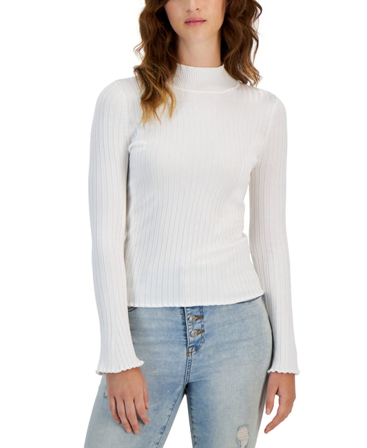 Planet Gold Juniors Crewneck Seamless Waffle-Knit Tank Top Bright White Large