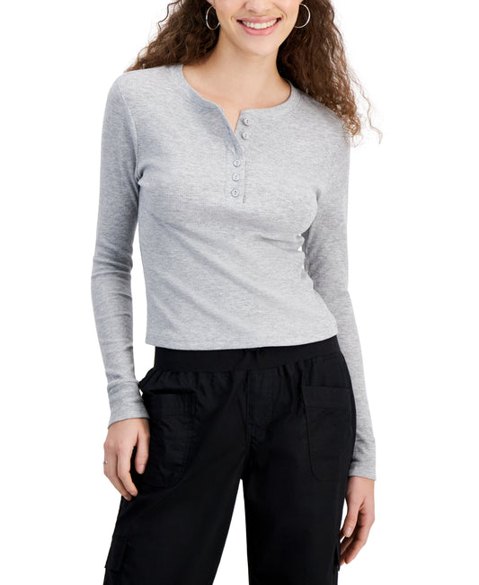 Just Polly Juniors' Tie-Neck Long-Sleeve Corset Top. Ditsy