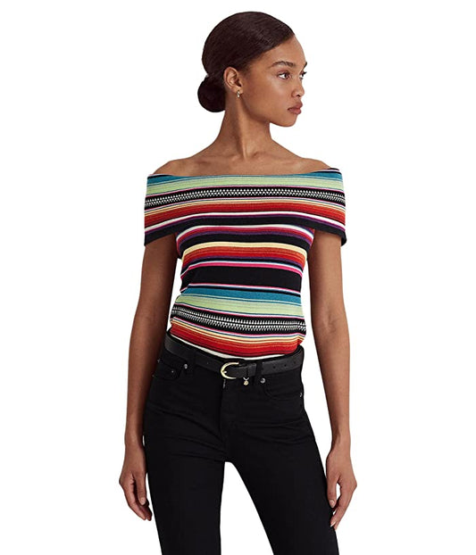 Ralph Lauren off shoulder striped ribbed top