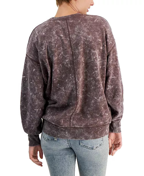 Hooked Up by IOT Juniors Printed Crewneck Swea Pale Lilac Butterfly sweater Top Medium