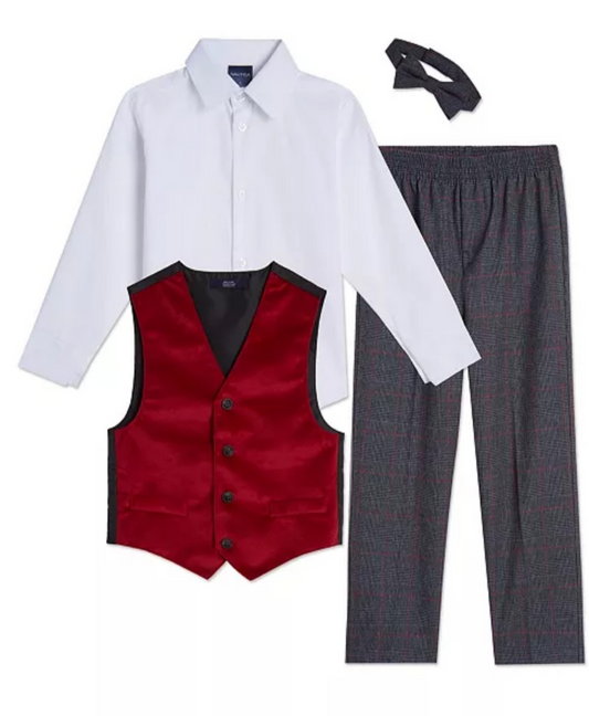 Nautica Little Boys Velvet 4 Piece Vest Rooster Red