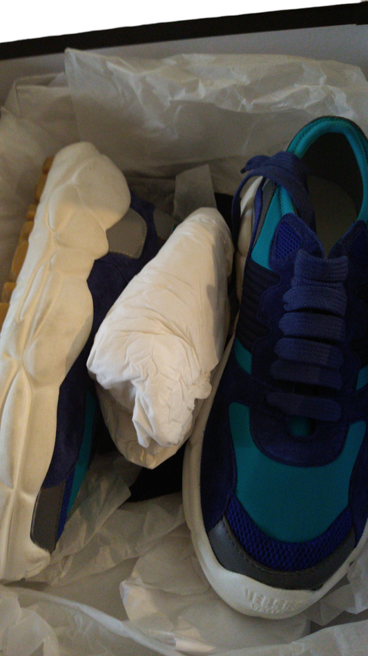VERSACE VERSUS Mens F2VNRC Suede Lace up Fashion Sneakers, BLUE 40