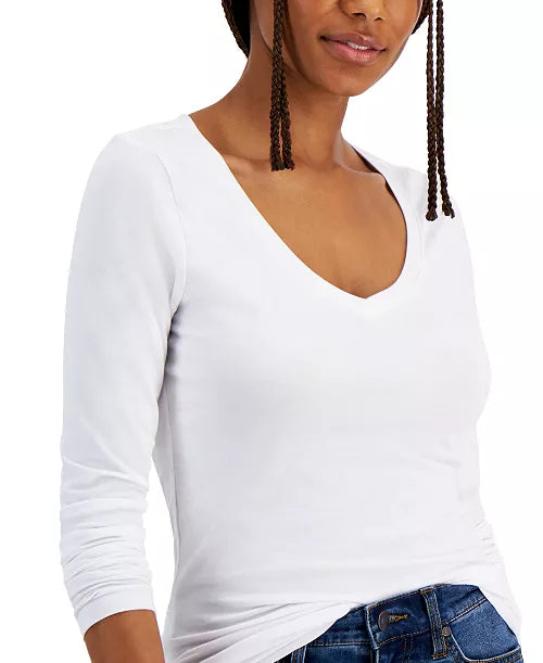 Derek Heart Juniors V-Neck Long-Sleeve Bo Bright White Large