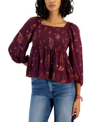 Just Polly Juniors' Tie-Neck Long-Sleeve Corset Top. Ditsy