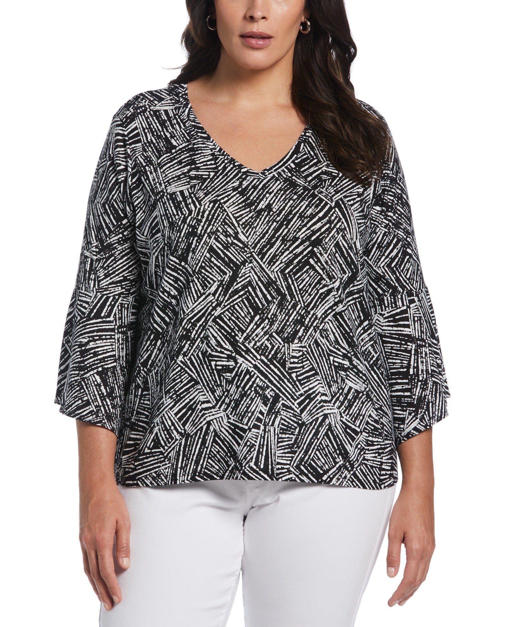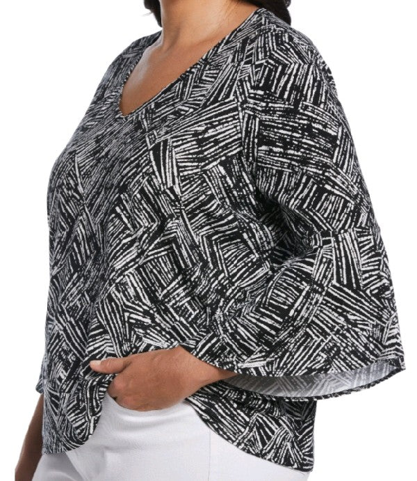 La tunique en tricot à col en V grande taille ELLA Rafaella allie confort et style. Fabriquée de manière stratégique avec un tissu en jersey léger qui contient du modal pour plus de douceur. L'encolure en V flatteuse est conçue pour une coupe décontractée. Ce haut polyvalent est parfait pour un usage quotidien sans effort.