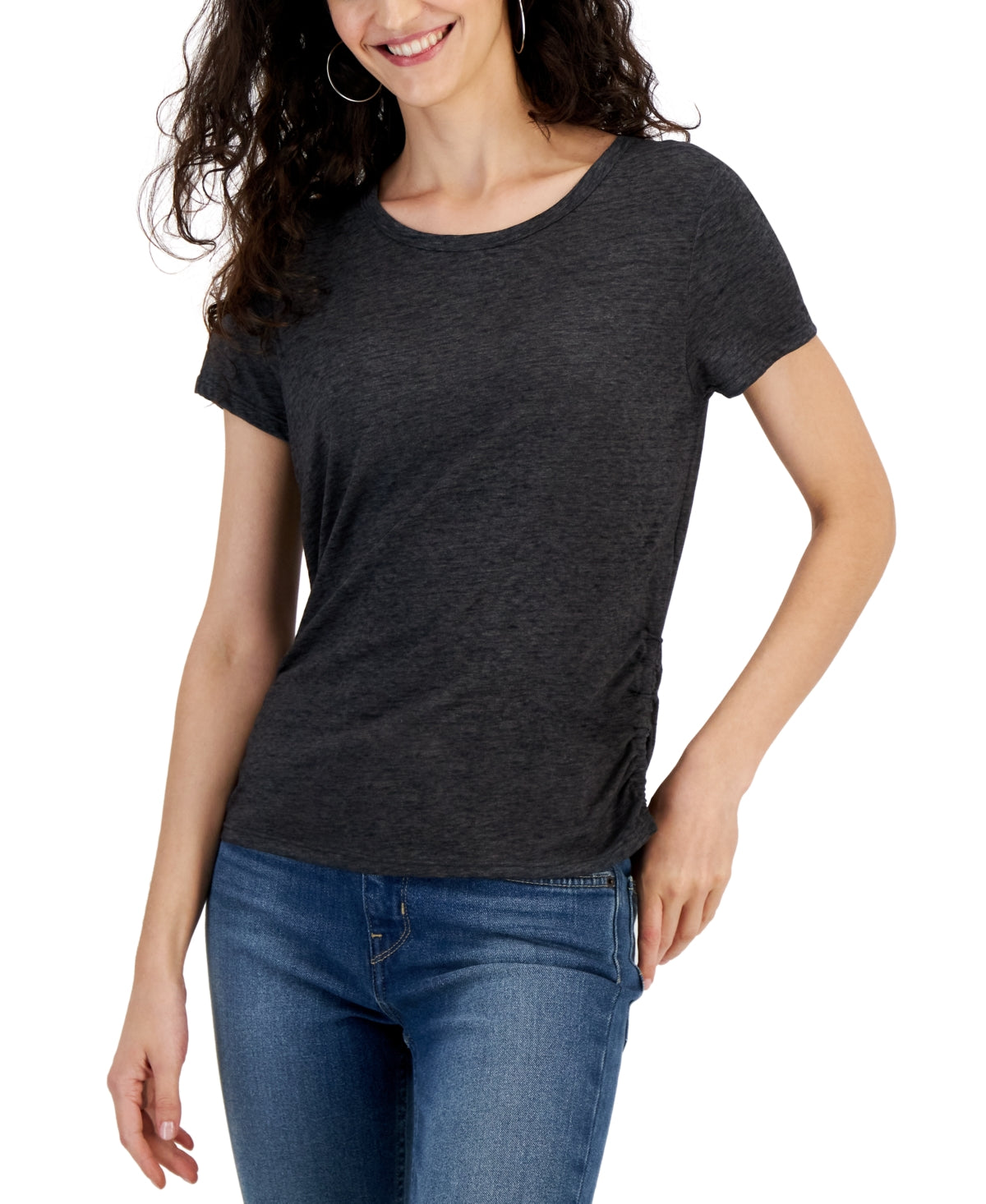 Hippie Rose Juniors' Side-Ruched Short-Sleeve T-Shirt