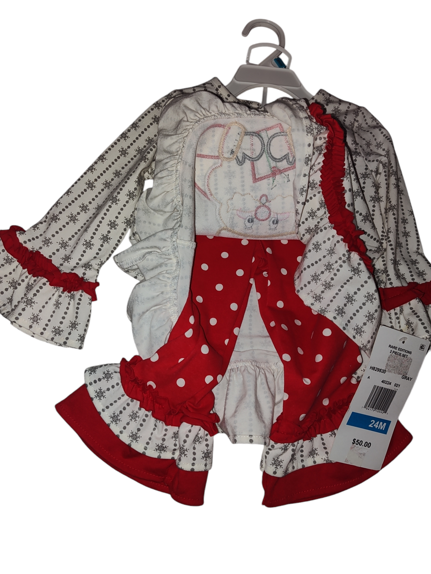 Dress your little one in style with the Rare Editions Baby Girls Santa Legging Set. Perfect for the holiday season, this gray set features a festive Santa print and comfortable leggings. Made for 24 months, it's the perfect festive outfit for your baby girl.