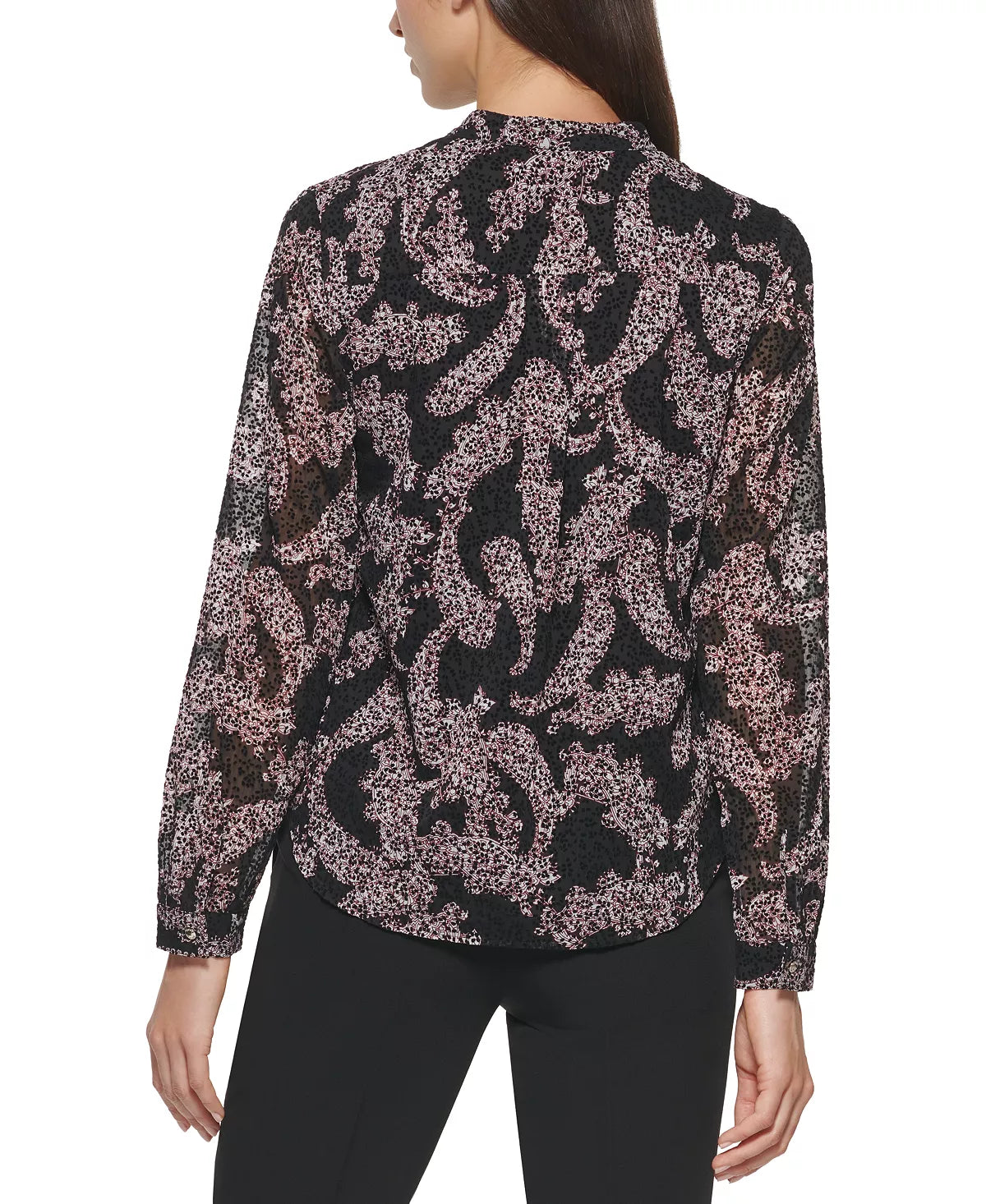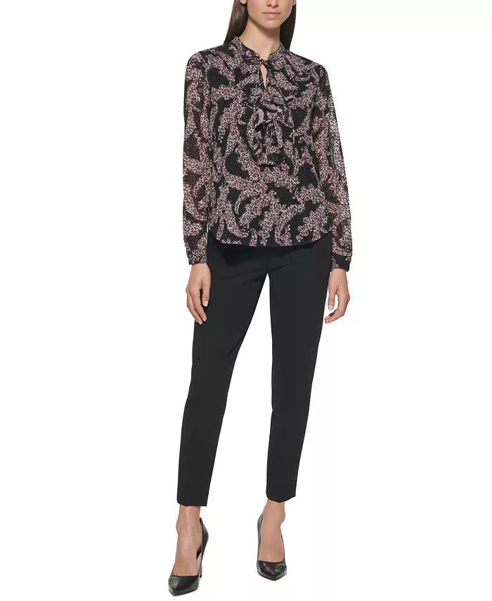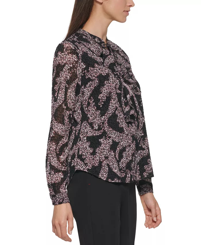 Chemisier à volants et col noué à imprimé cachemire