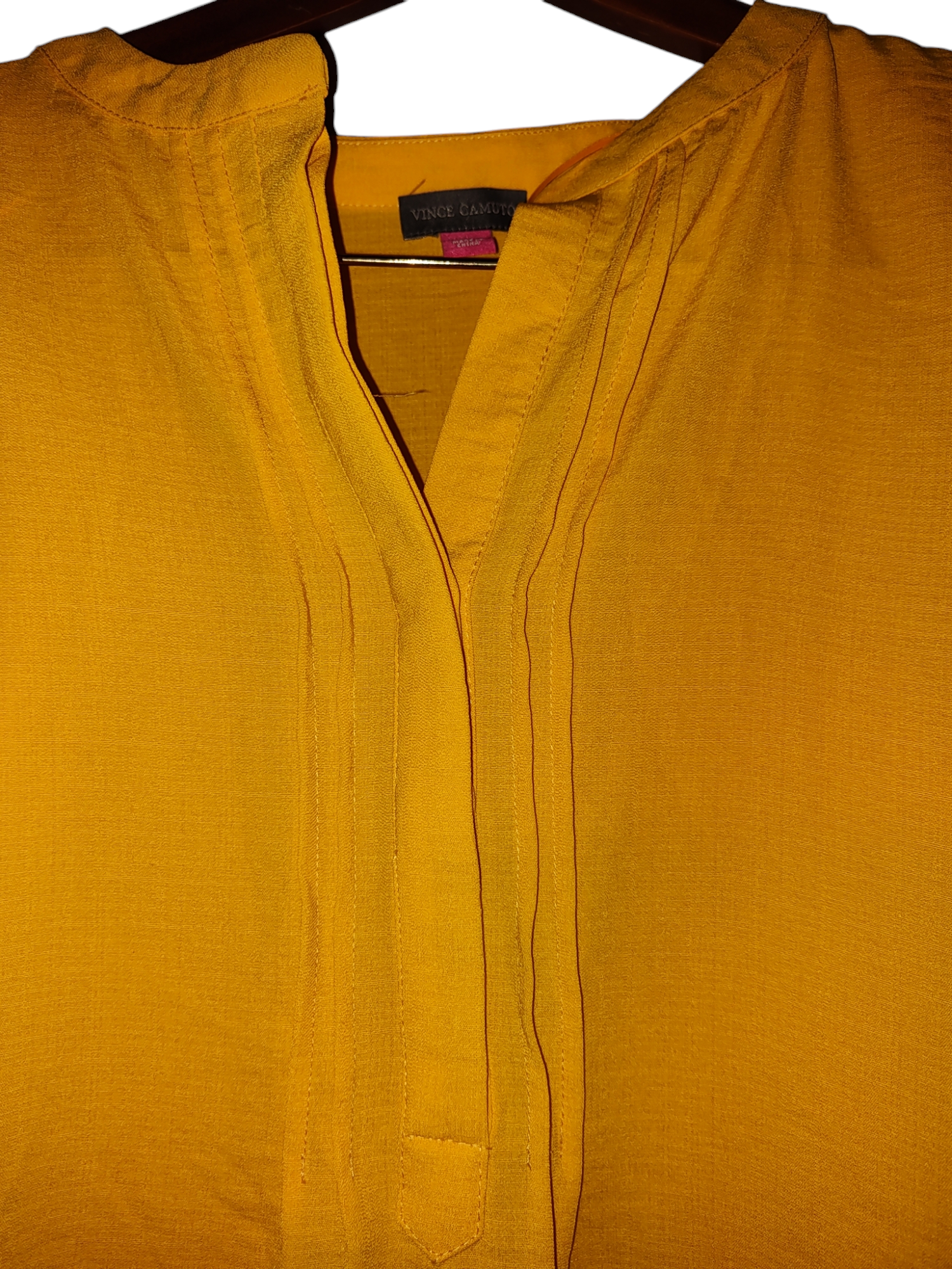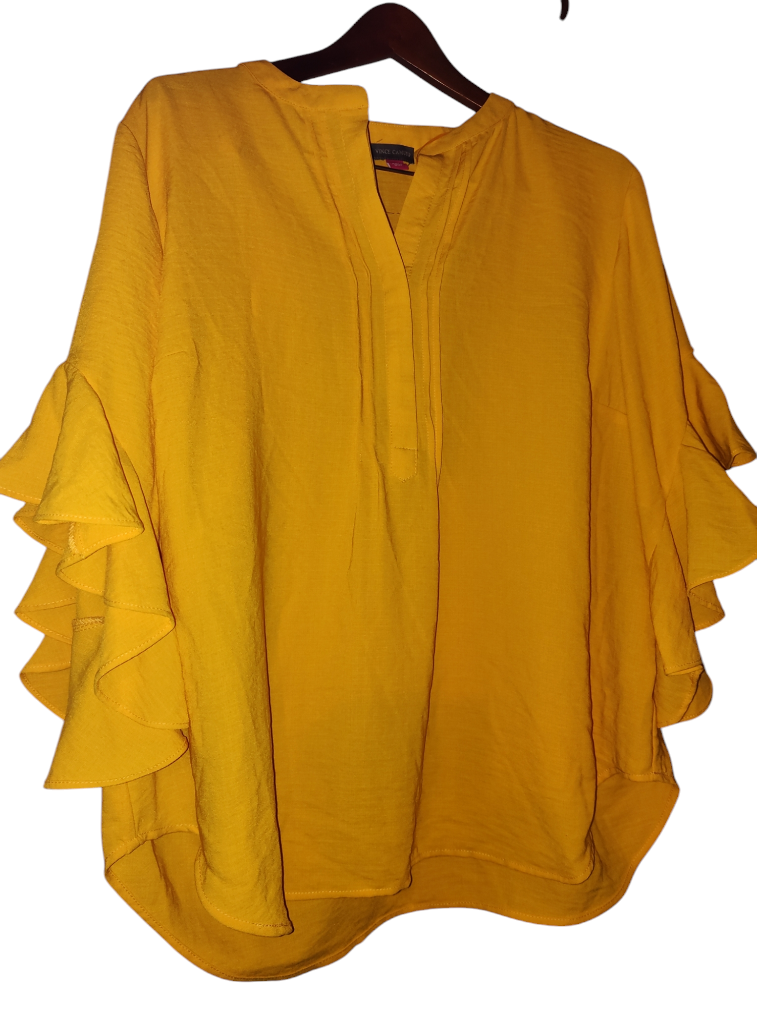 Le haut Henley à manches volantées grande taille de Vince Camuto présente une version élégante du Henley classique avec des manches à volants féminines. Ce haut confortable et polyvalent allie une élégance décontractée à une silhouette douce et fluide, parfait pour un usage quotidien sans effort ou pour s'habiller pour une soirée.