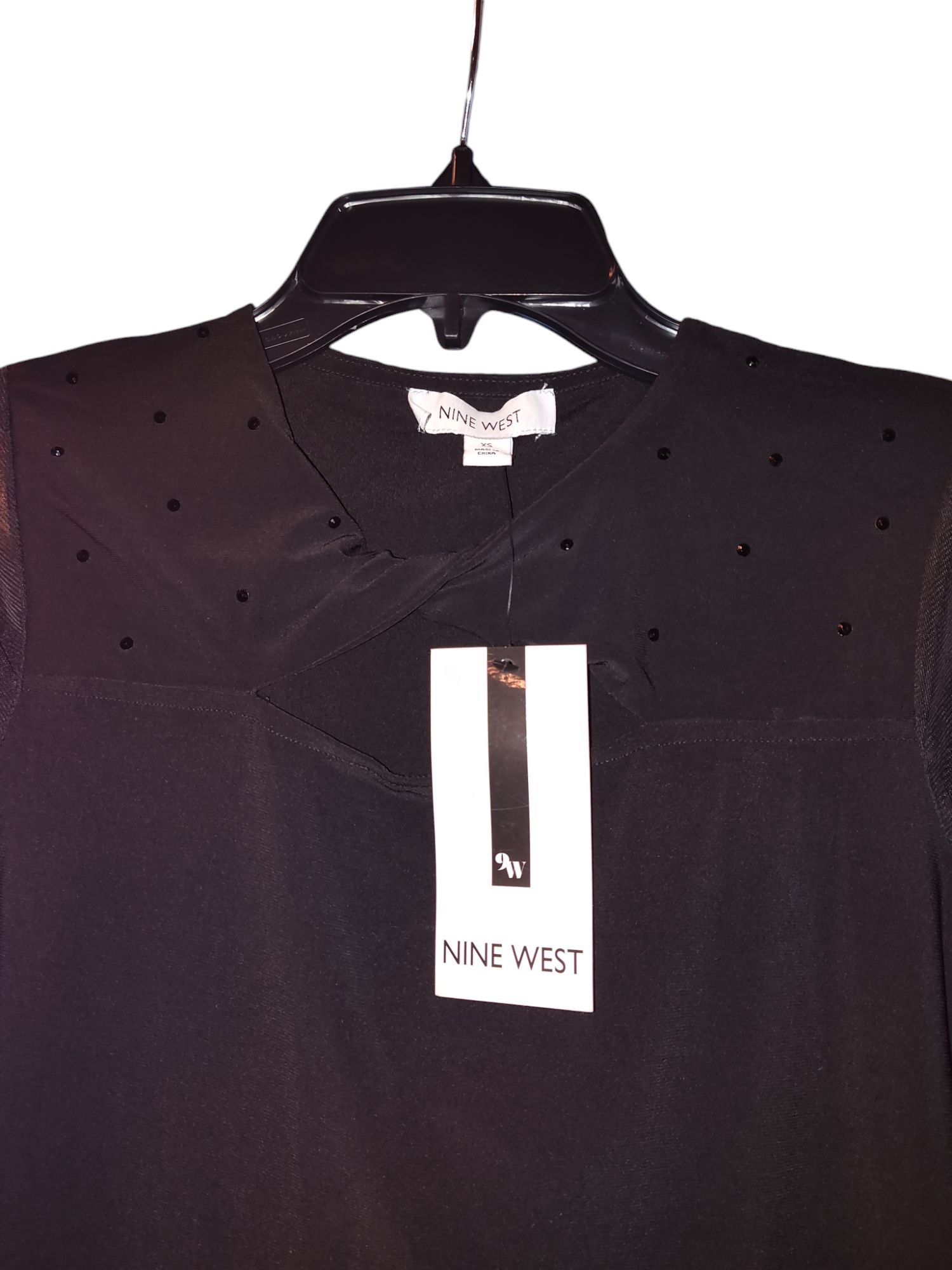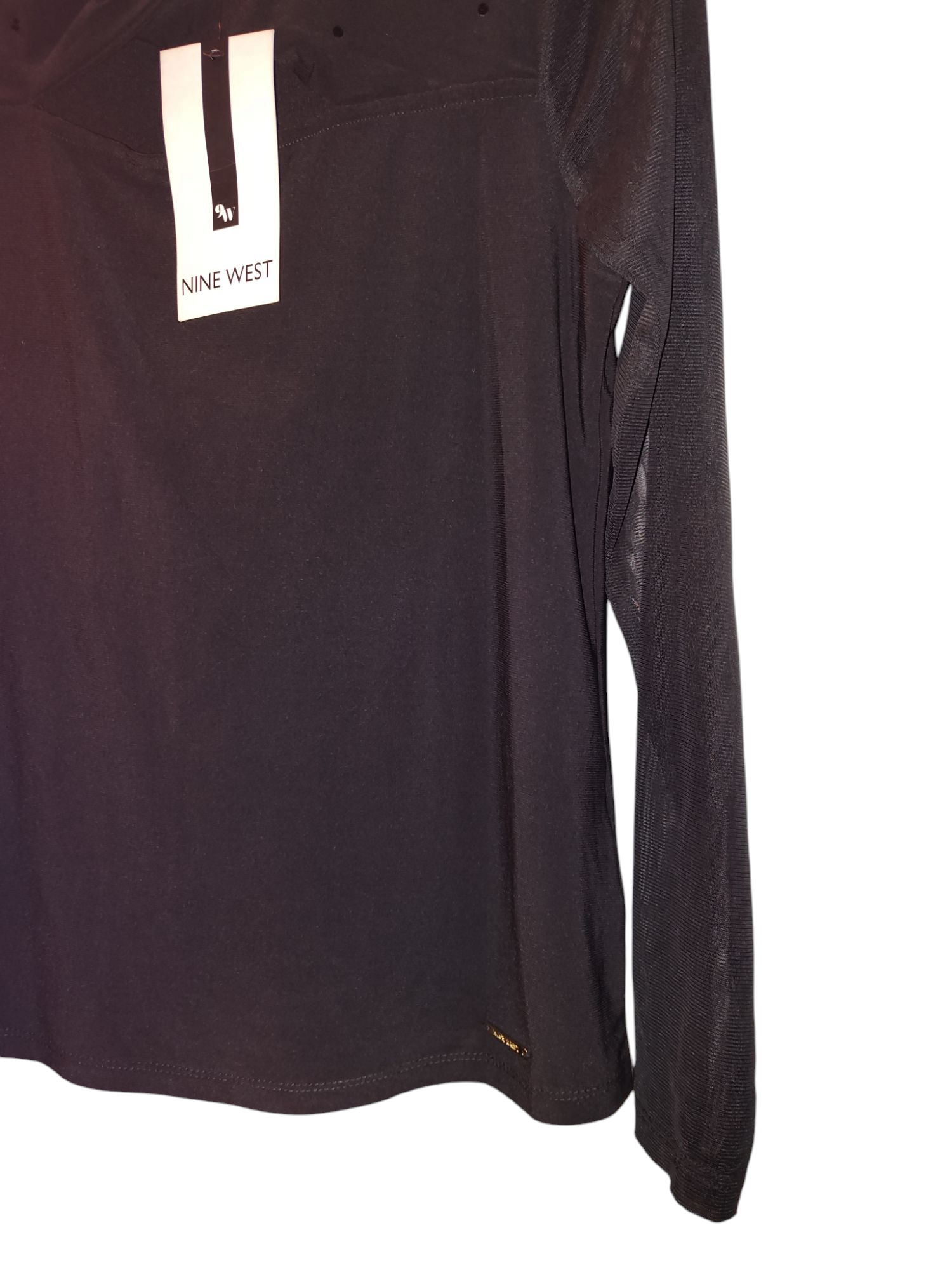 Nine West Womens Twist-Neck Cutout Long sleeve mesh blouse XS black