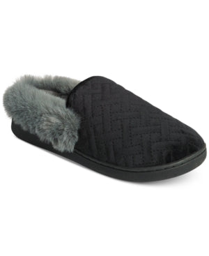 Charter Club Quilted Clog Slippers Faux Fur. Memory Foam Black