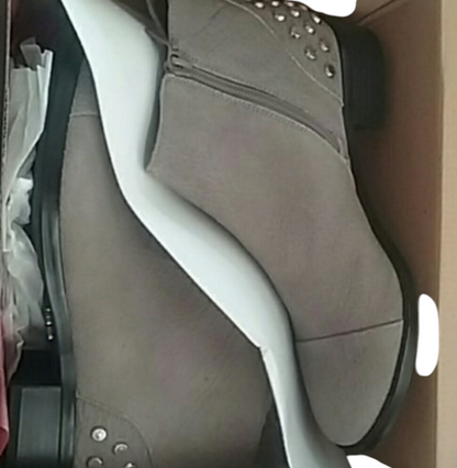 Expertly crafted, the Rachel Roy Fryda boots feature a low ankle design and studded embellishments. Made with high-quality leather, these boots offer both style and comfort. With a low block heel, they provide a stable and effortless stride. Perfect for any occasion.