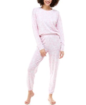 Roudelain Butter Knit Pajamas jogger Pant Set Leopard Gray/ White XL
