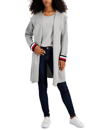 Tommy Hilfiger Striped-Cuff Hooded Cardigan gray sweater coat XL
