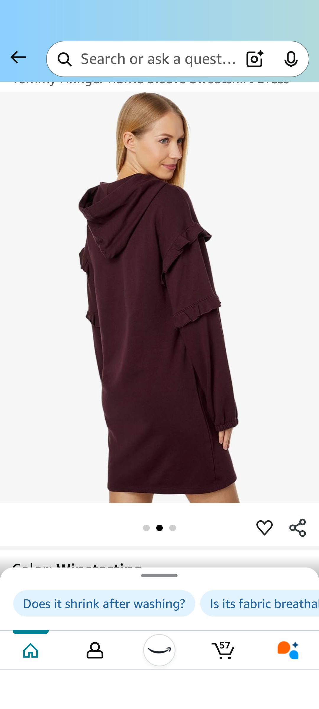Tommy Jeans Ruffle sleeve sweatshirt dress. Purple. XS.